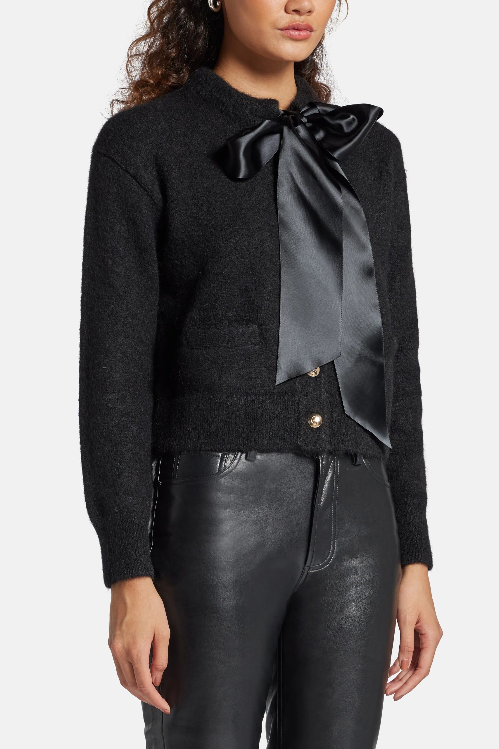 Rhodes Bow Nylon Cardigan in Black